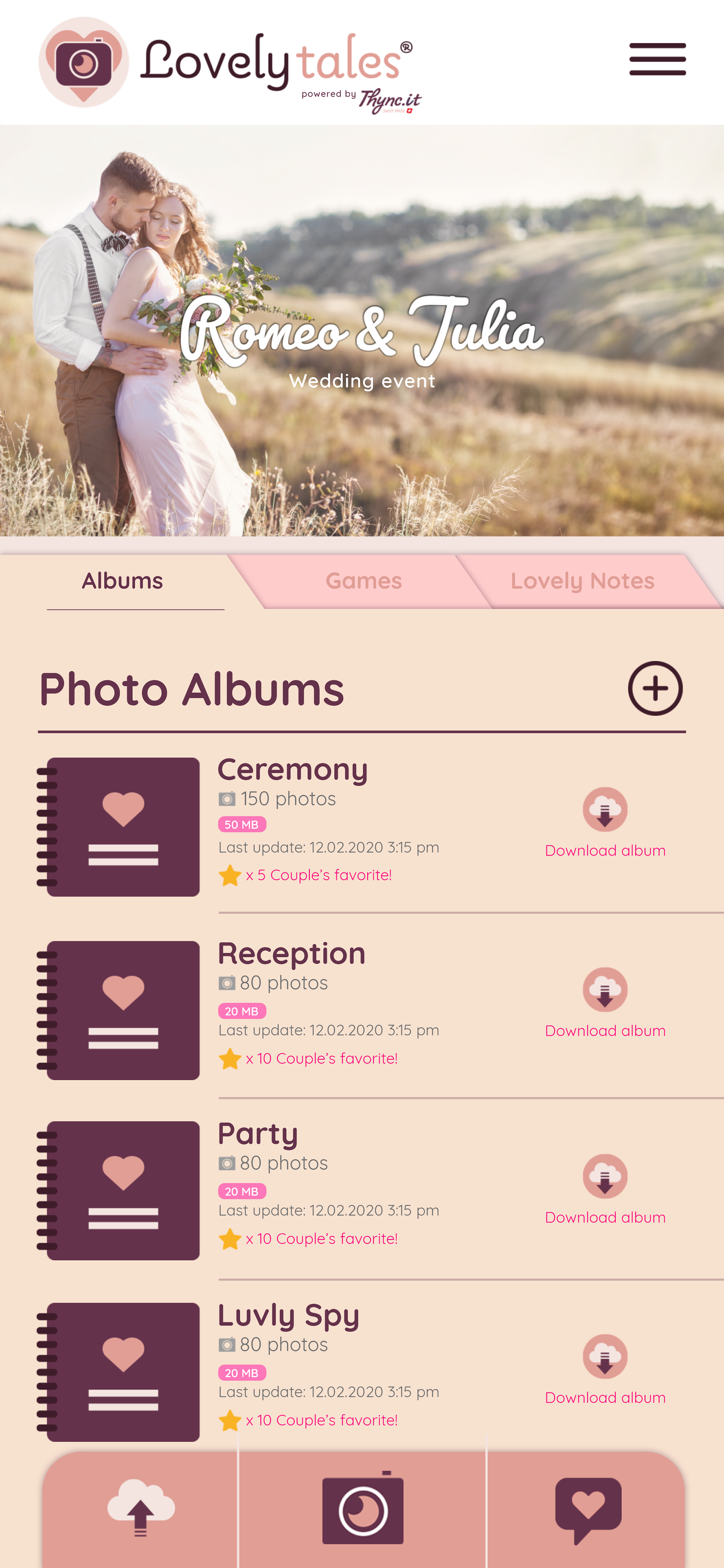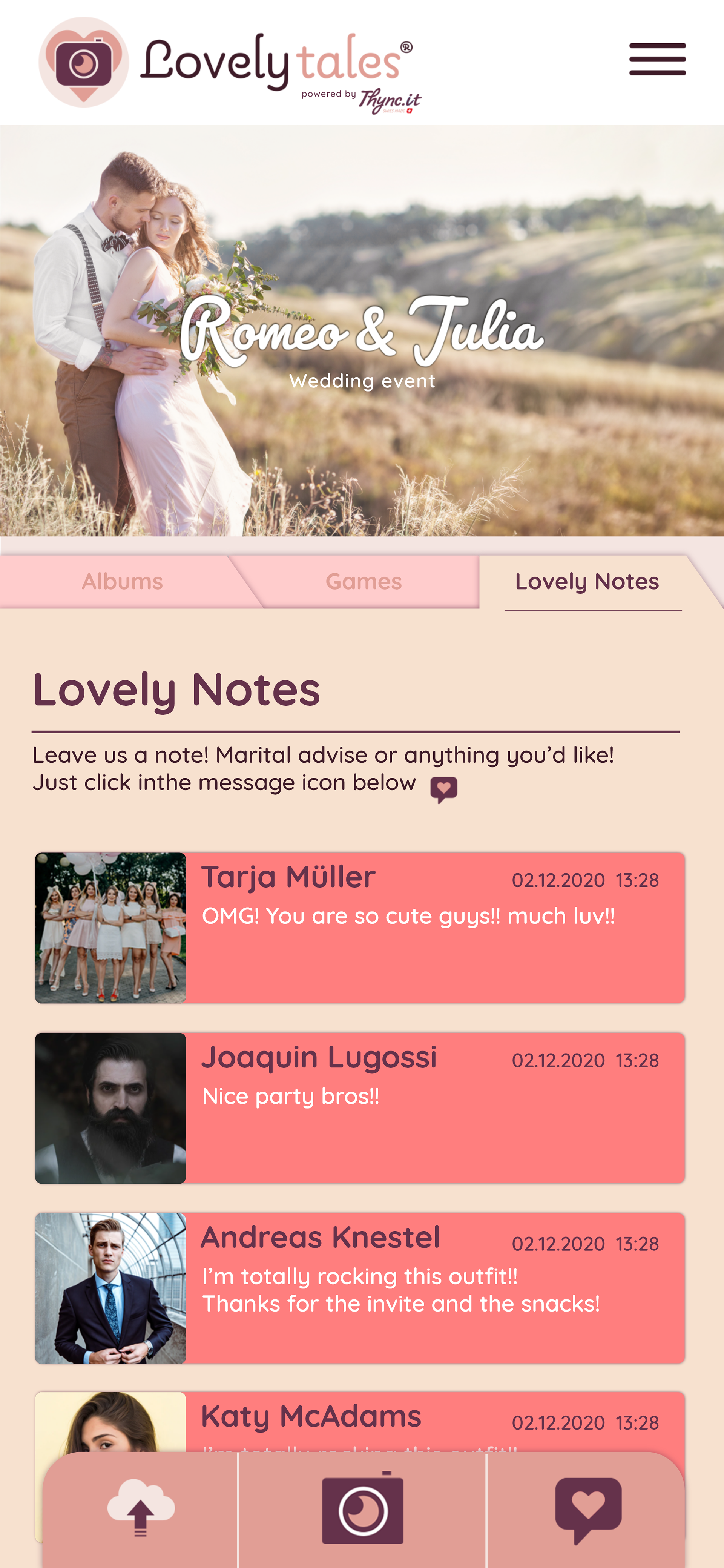 Lovely Tales was UX prototype for a client that wanted a web based app aimed towards weddings and events facilitating the easy administration and sharing of photos within a private closed network.